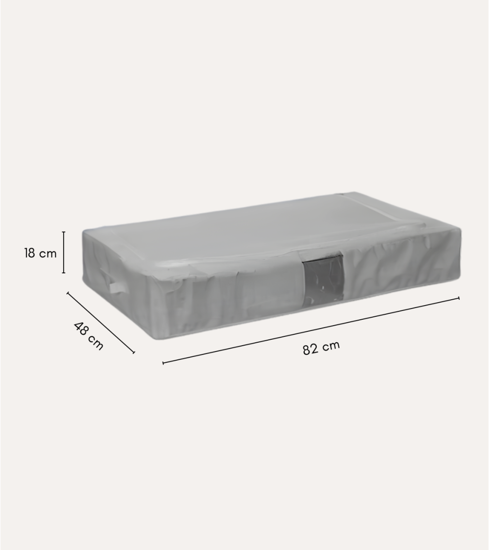 Cada bolsa incluye una ventana transparente en la parte frontal, permitiendo ver el contenido sin necesidad de abrirla. Esto es especialmente útil para localizar rápidamente lo que necesitas. Además, las asas laterales facilitan su extracción desde debajo de la cama, mejorando aún más su funcionalidad.