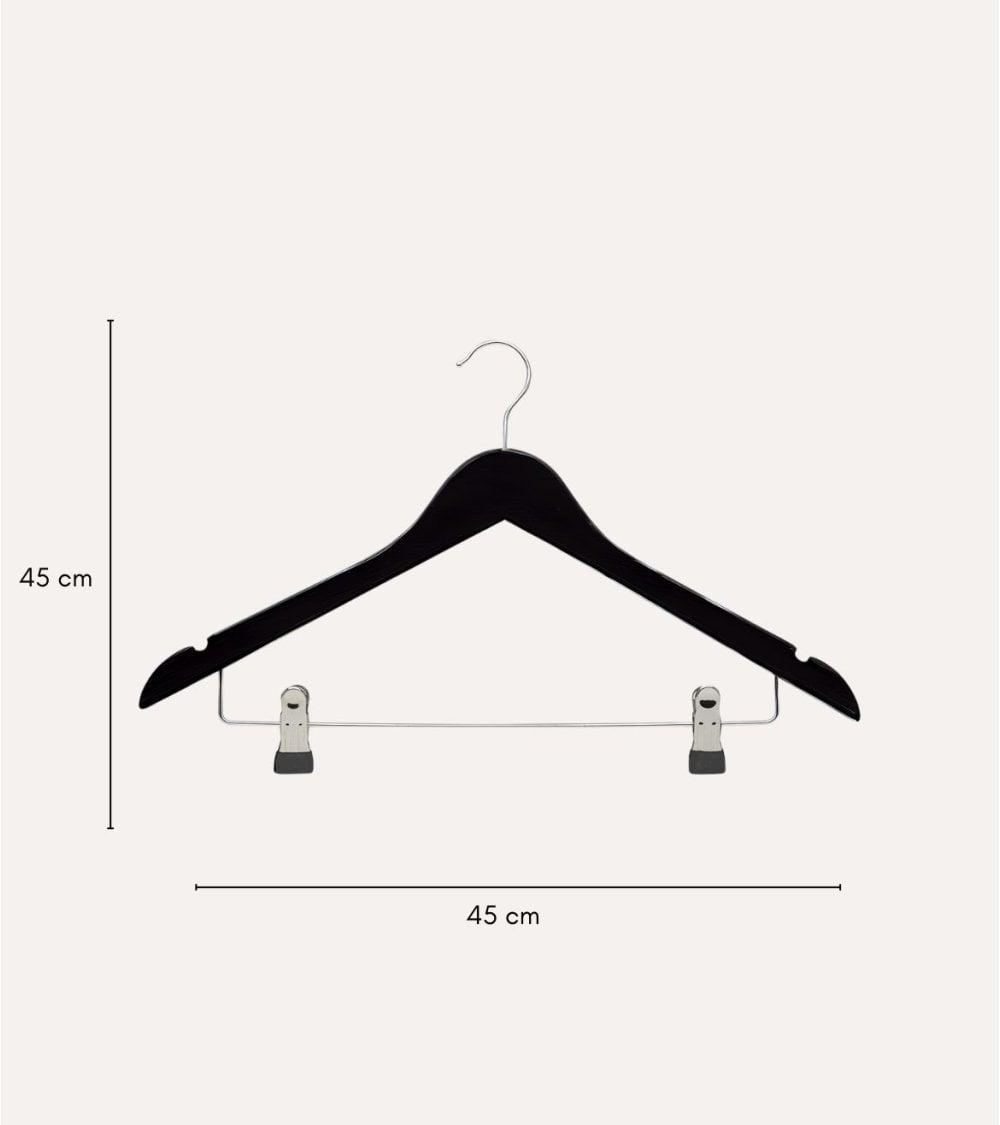 - Material Duradero: Hechas de madera resistente, estas perchas garantizan una larga vida útil y un soporte robusto para tus prendas.