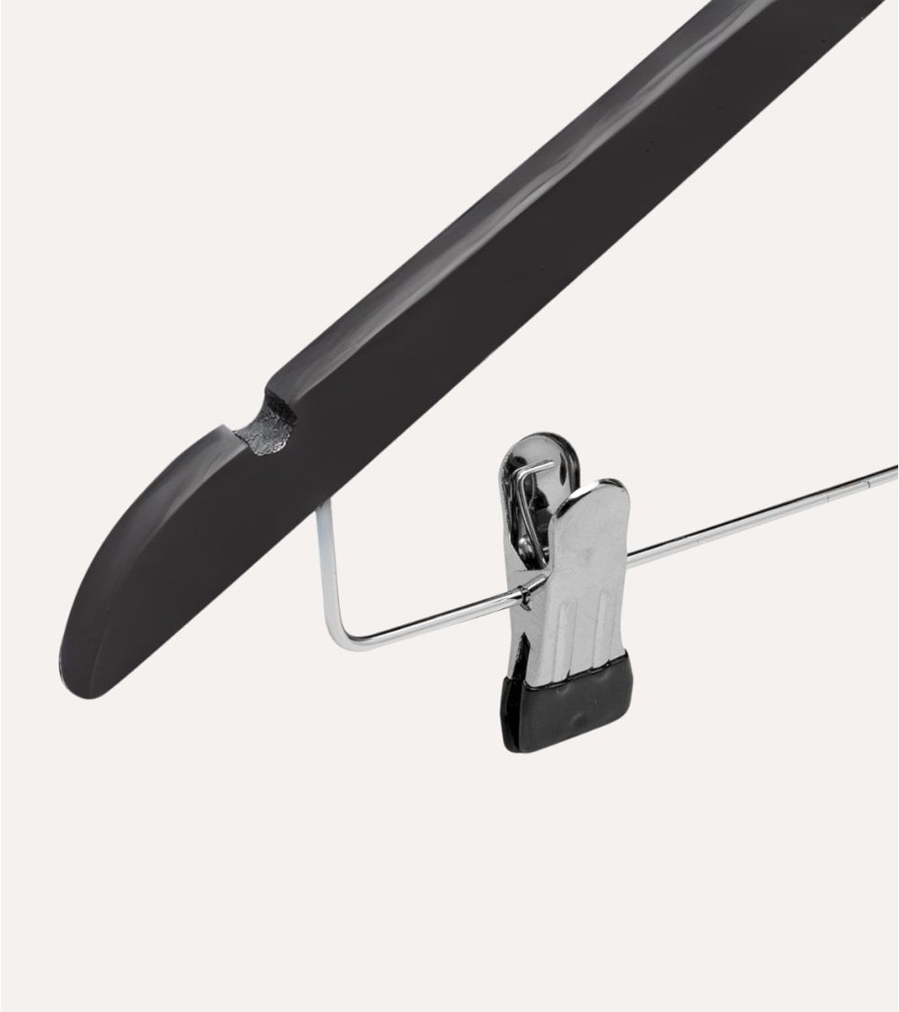 - Clips Funcionales: Equipadas con dos clips cromados que permiten colgar faldas y pantalones sin esfuerzo, manteniendo todo en su lugar.