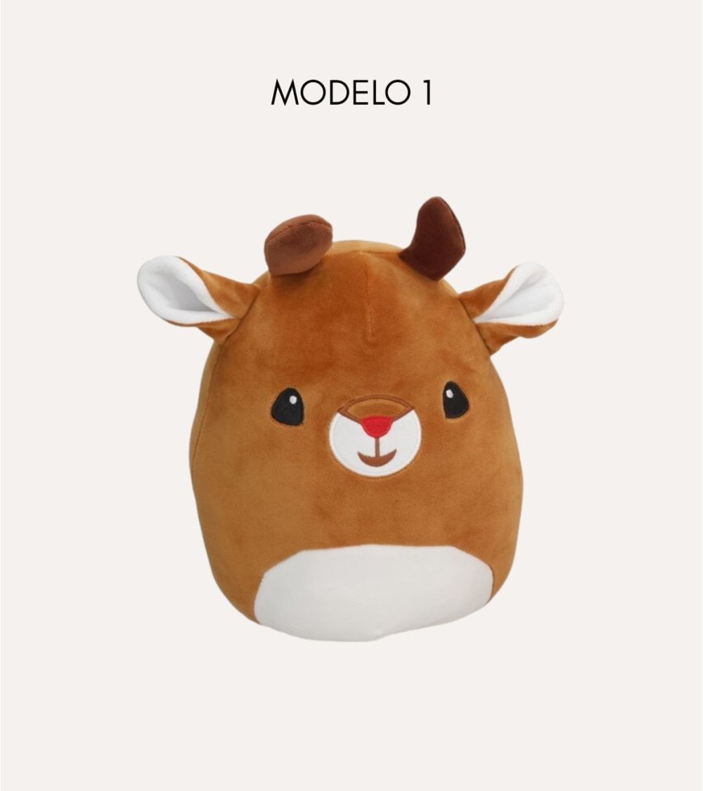 Disponible en dos adorables variantes, este peluche captura la esencia de la Navidad con detalles cuidadosamente elaborados. Por un lado, el muñeco reno presenta un tono marrón cálido con una textura esponjosa que invita a abrazarlo. Sus grandes ojos amigables, pequeñas astas y orejas blancas interiores lo convierten en un compañero entrañable para niños y adultos por igual.
