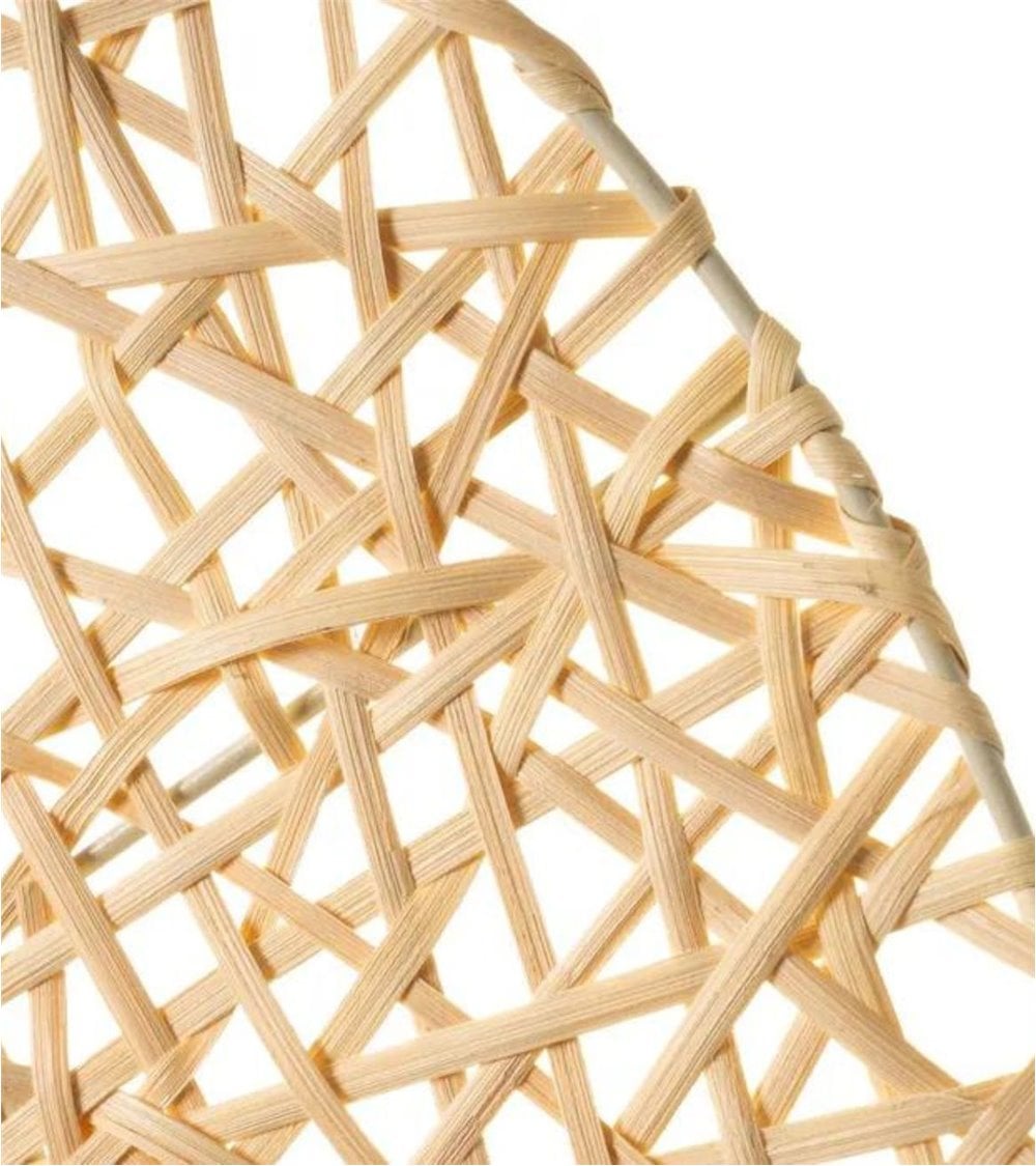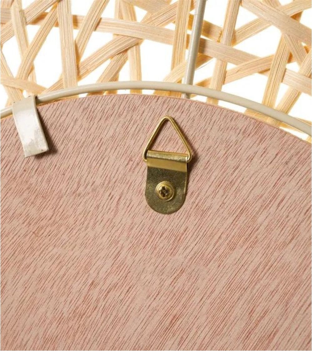 Sofisticado espejo de 24,5 cm de diámetro con marco de ratán y un diseño que asemeja a una tela de araña, ideal para estilos nórdicos y naturales.