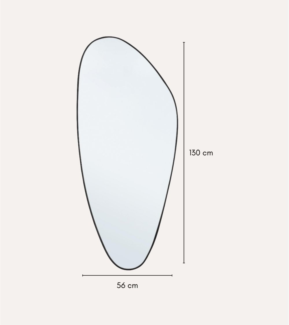Este espejo es ideal para quienes buscan un elemento decorativo que también cumpla una función práctica. Su superficie de vidrio reflectante ofrece una imagen clara y nítida, mientras que el marco metálico en acabado mate negro realza su silueta única sin perder elegancia ni sobriedad.