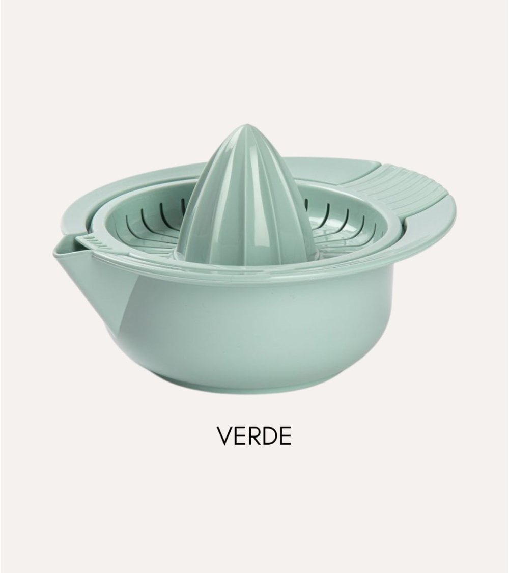 Este exprimidor de plástico resistente y ligero, de tamaño compacto (18 x 16 x 10.5 cm), es fácil de manejar y limpiar. Disponible en tres tonos pastel: menta suave, rosa delicado y beige claro, se adapta a cualquier decoración. Su diseño incluye una base redonda con un cono central cónico con estrías para extraer eficientemente el jugo y retener las semillas. Cuenta con un pico vertedor para servir el jugo directamente y una textura antideslizante para un agarre firme. Ideal para limones, limas y naranjas pequeñas.