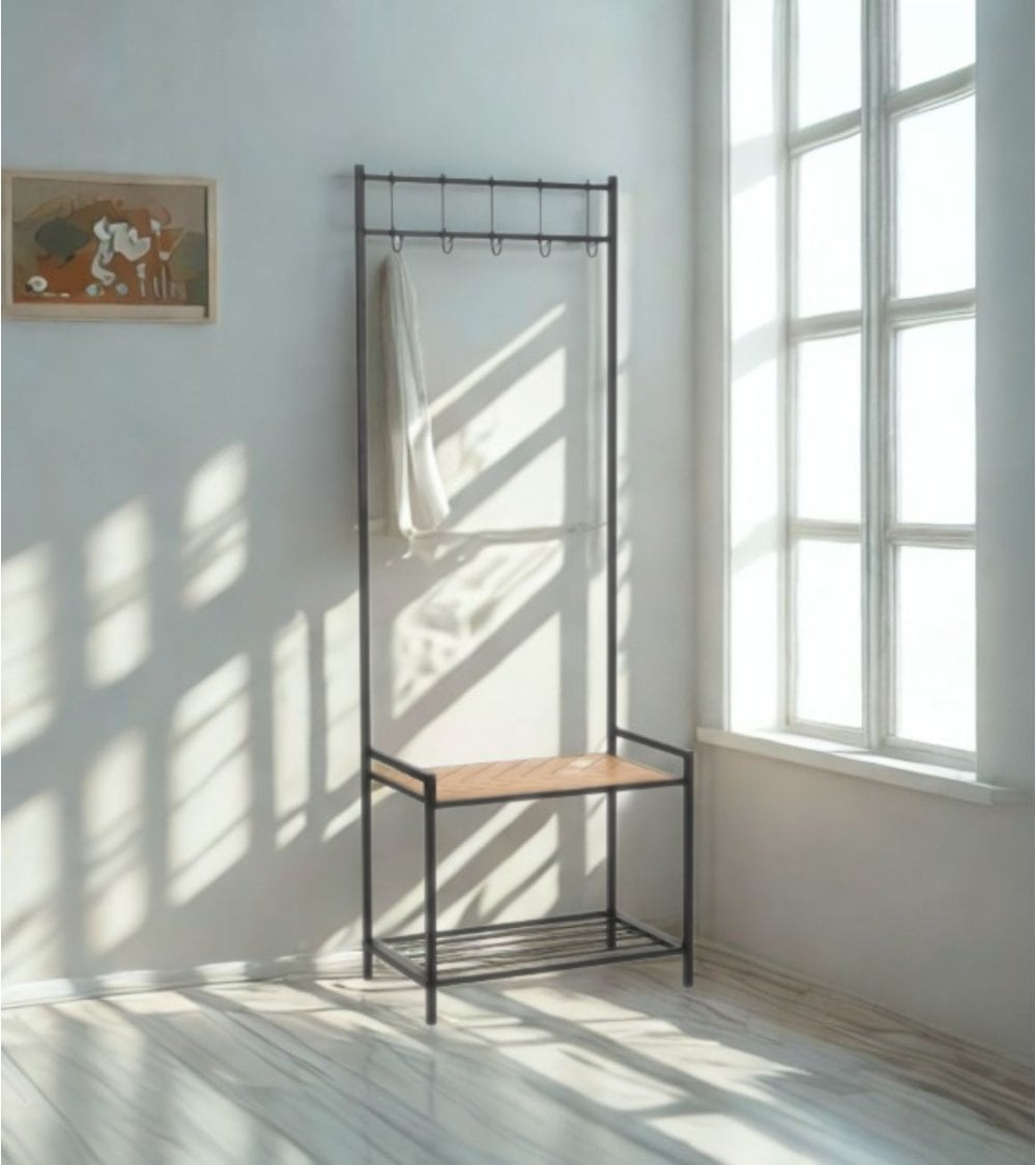 Perchero de Pie Haldor de Acero Epoxi y MDF