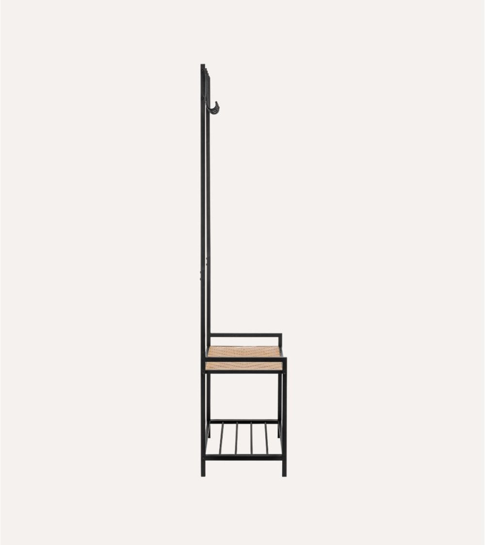 Fabricado por la reconocida marca Bizzotto, este perchero destaca por su estructura robusta en acero con acabado epoxi, que garantiza durabilidad y resistencia al desgaste diario. La combinación con elementos en MDF aporta un toque cálido y sofisticado, creando un equilibrio perfecto entre lo industrial y lo acogedor.