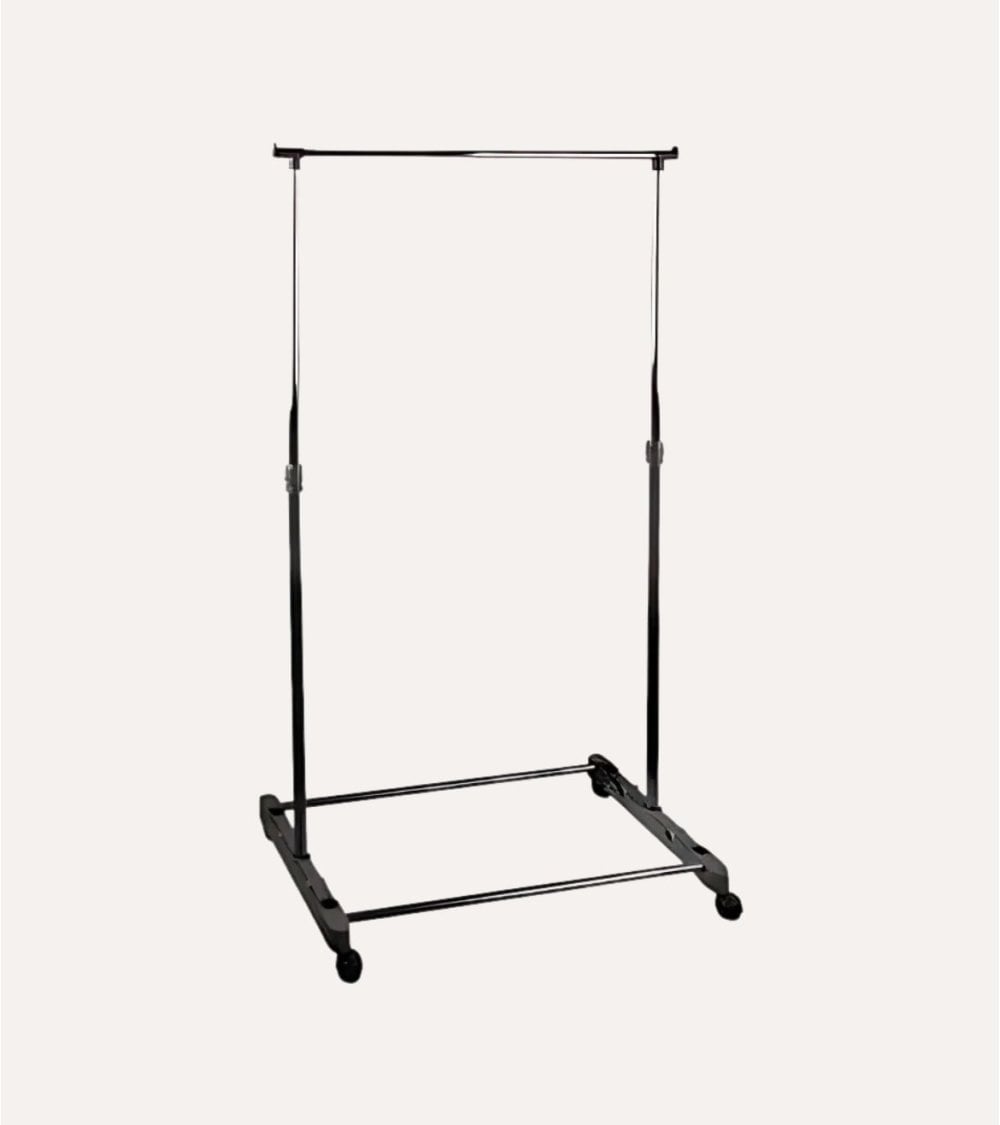 Con un diseño minimalista, el Perchero Urban Living cuenta con una estructura robusta pero ligera, lo que facilita su movilidad. Su base rectangular proporciona estabilidad, mientras que las ruedas permiten un desplazamiento suave en diferentes superficies. Ya sea en su hogar, en una tienda minorista o durante un evento de moda, este perchero se adapta a sus necesidades.