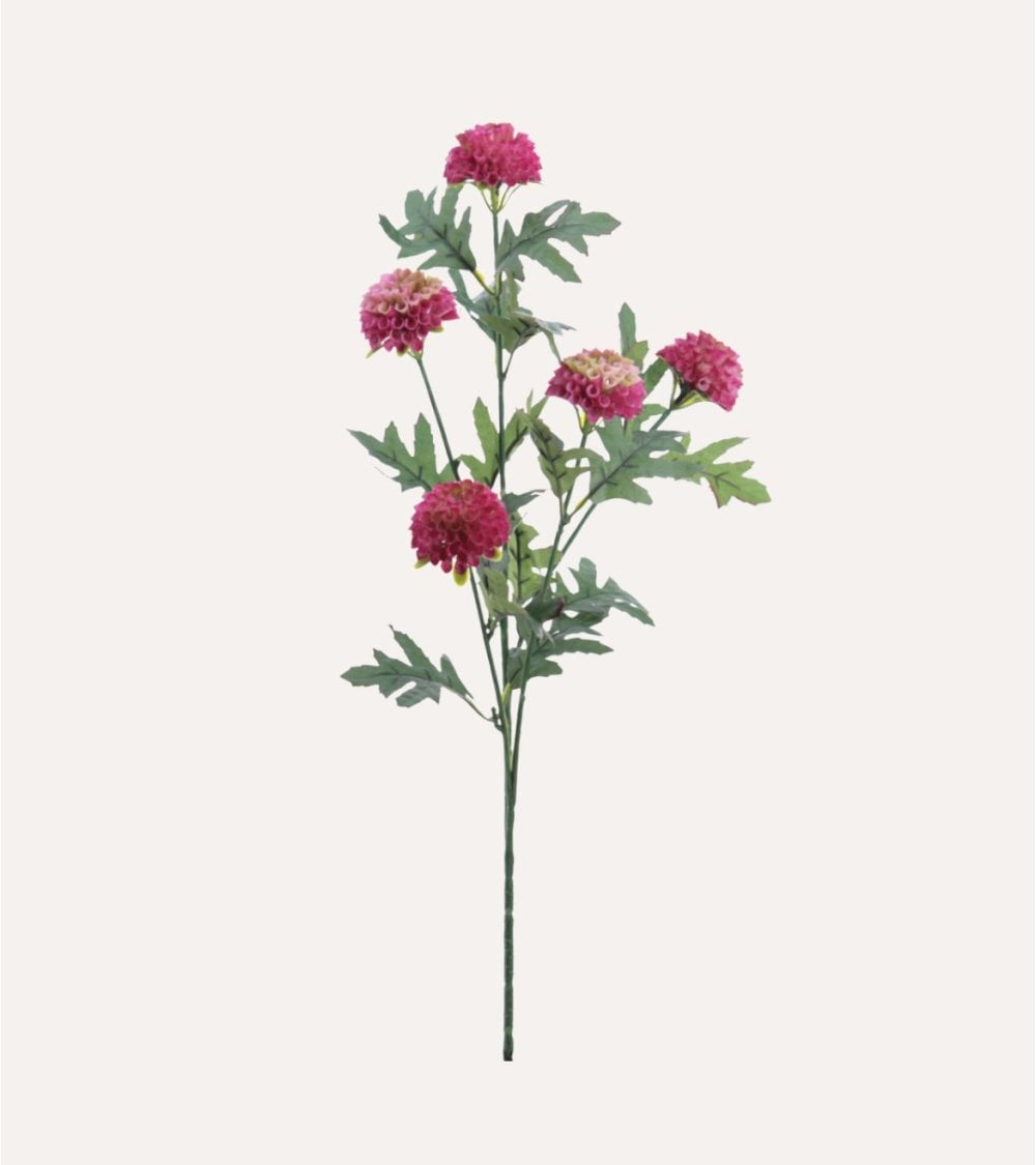 CEste tallo es lo suficientemente compacto para adaptarse a jarrones pequeños o centros de mesa, pero lo bastante llamativo para destacar en cualquier rincón. Sus flores mini dahlias presentan un diseño detallado con pétalos densamente agrupados que imitan fielmente la textura y forma natural, aportando un aire elegante y moderno.