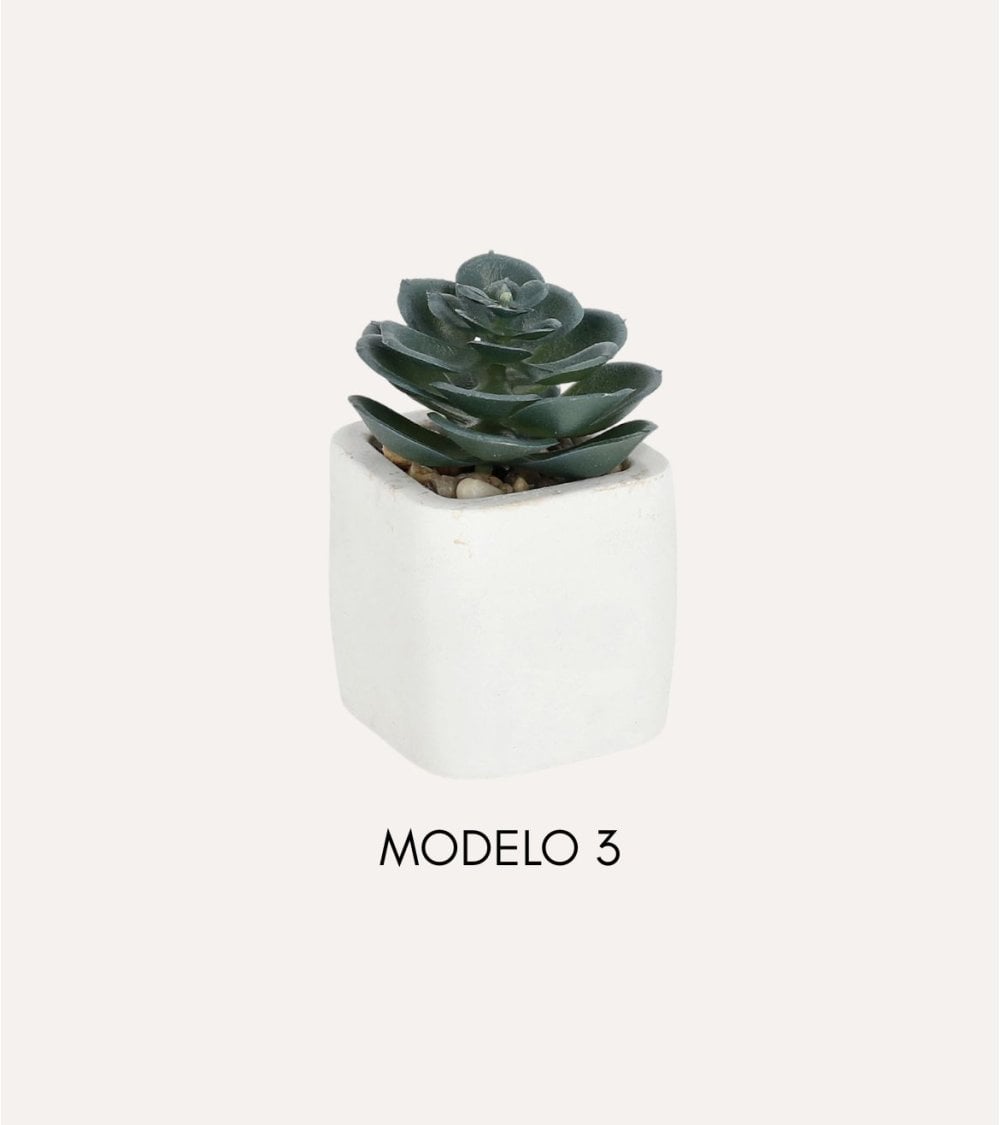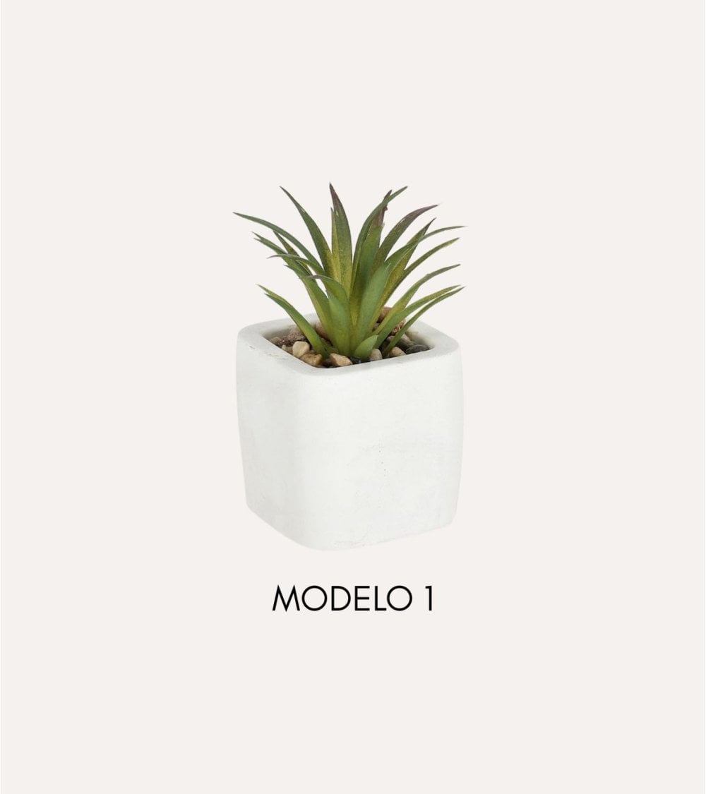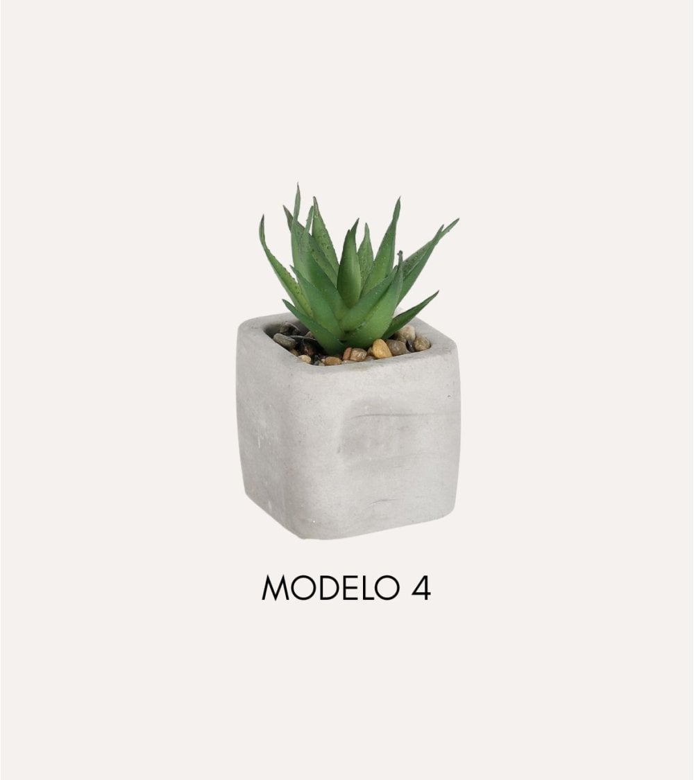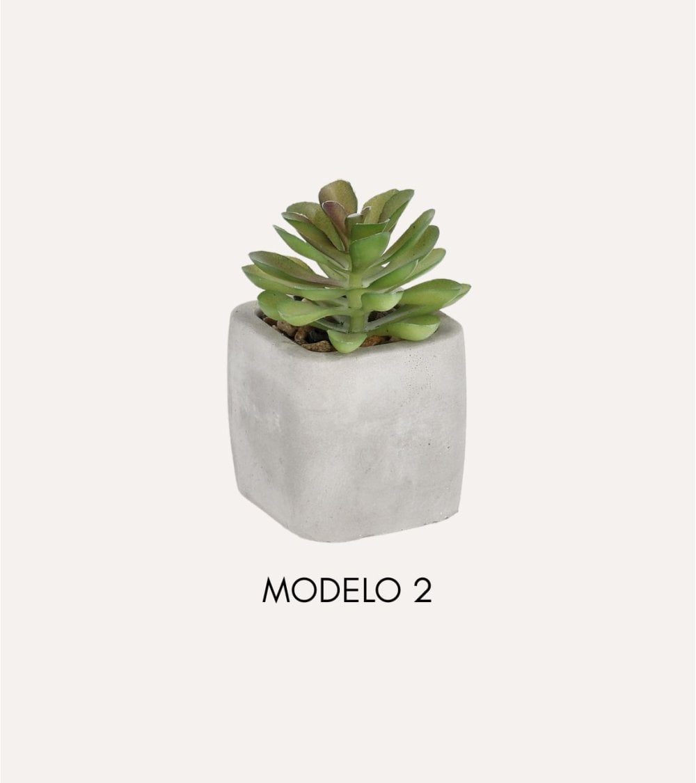 Su base de aspecto cemento aporta un aire contemporáneo y urbano, mientras que el acabado de la planta en plástico de alta calidad reproduce con gran realismo la textura y el color de las suculentas naturales. Gracias a sus variaciones de diseño, podrás elegir la composición que mejor combine con tu mobiliario, ya sea con hojas alargadas, formas en roseta o mezclas de volúmenes que crean dinamismo visual.