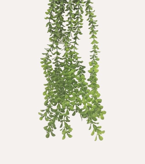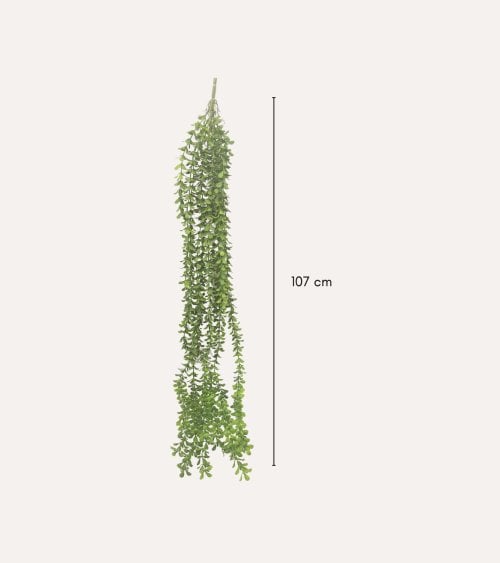 Su forma cascada crea un efecto visual muy decorativo, ideal para colocar en estanterías altas, soportes de pared, maceteros colgantes o repisas estrechas. Con una longitud de 107 cm según la variante elegida, esta planta artificial se adapta tanto a espacios compactos como a rincones amplios en salones, comedores, dormitorios u oficinas. Es un complemento ideal para estilos modernos, nórdicos, minimalistas o boho, aportando un toque de naturaleza sin necesidad de mantenimiento.