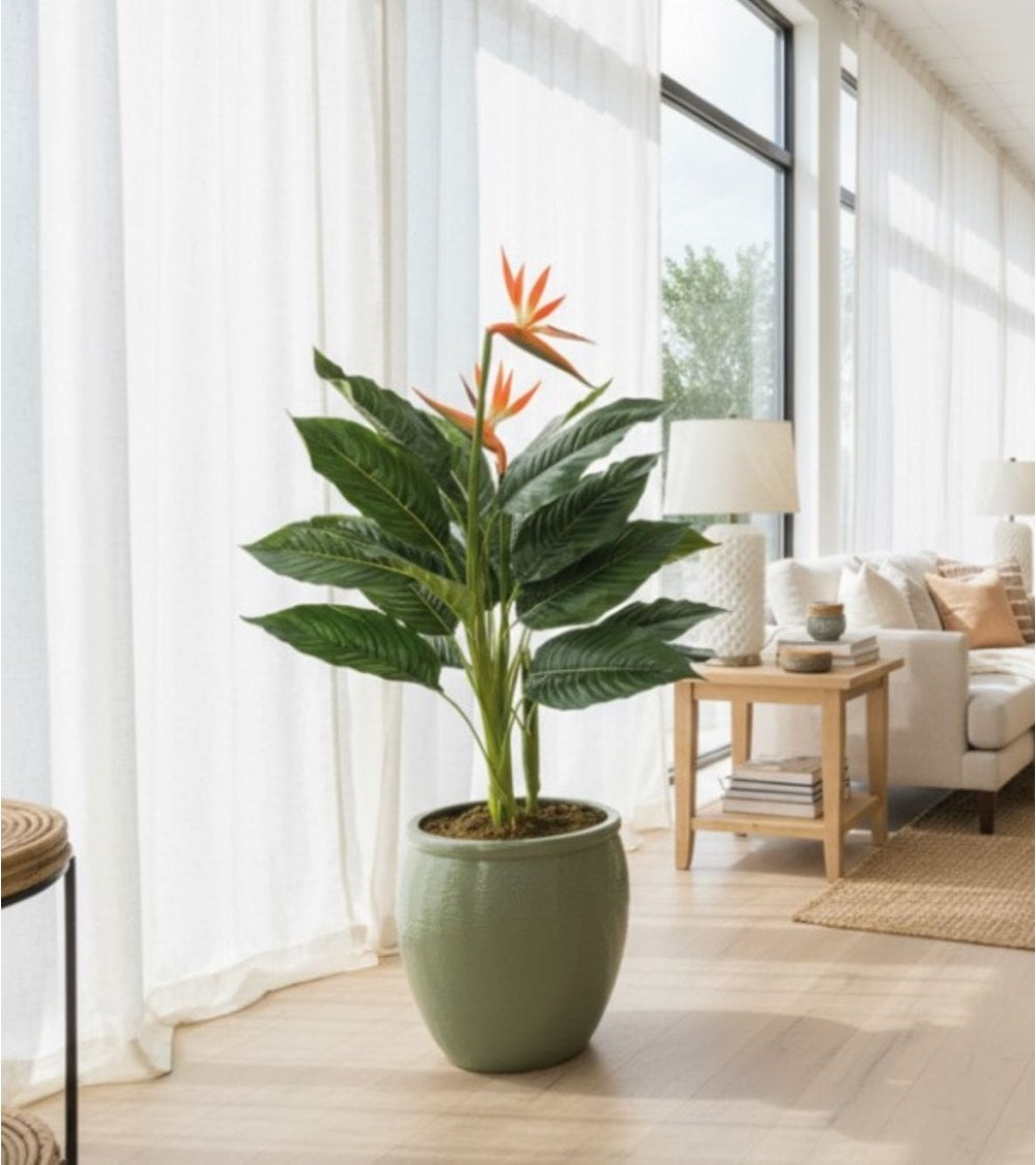 Gracias a su acabado minucioso, la Planta Decorativa Flor Esterlizia de Aspecto Realista se convierte en un elemento clave para quienes buscan decoración de hogar impactante sin complicaciones. Simplemente colócala en tu rincón favorito y disfruta de una sensación de frescor y naturaleza durante todo el año. Además, es una excelente opción para oficinas, negocios, recepciones o espacios comerciales que requieren una imagen cuidada y profesional.