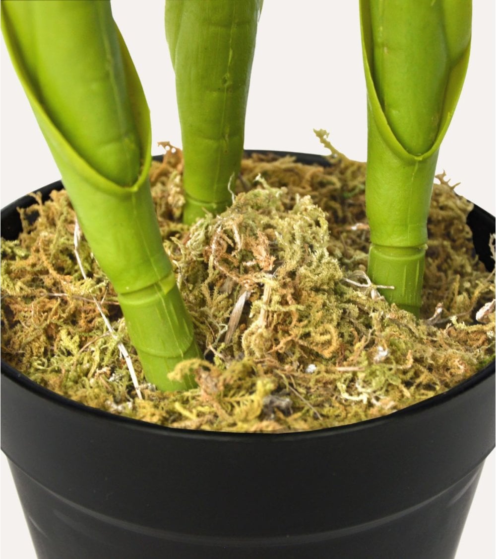 Fabricada con materiales de alta calidad como plástico y poliéster, esta planta decorativa asegura un aspecto realista y duradero. La combinación de hojas verdes brillantes y flores estilizadas está pensada para mantener su belleza todo el año, sin riego, sin poda y sin necesidad de luz natural directa. Es ideal para espacios interiores con poca iluminación o lugares donde las plantas naturales no prosperan.