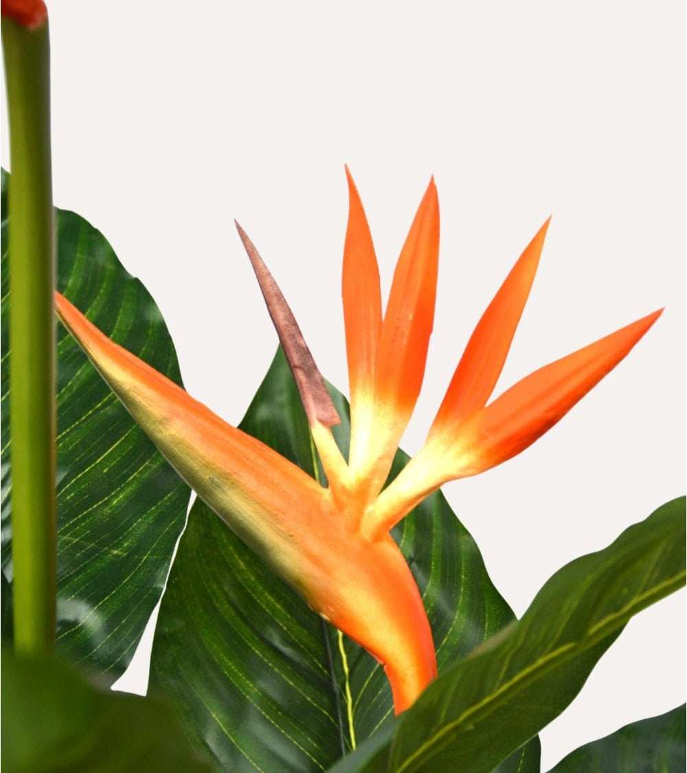 La Planta Decorativa Flor Esterlizia de Aspecto Realista de Sinder, disponible en la categoría Plantas de ALI Hogar, es la opción perfecta para quienes desean un toque exótico y elegante sin mantenimiento. Inspirada en la icónica Strelitzia o “ave del paraíso”, esta planta artificial luce hojas grandes y flores naranjas intensas que aportan vida y color a cualquier estancia, desde el salón hasta la oficina o el recibidor.