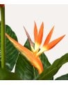 - Diseño exótico tipo Strelitzia, con hojas grandes verdes y flores naranjas muy decorativas.