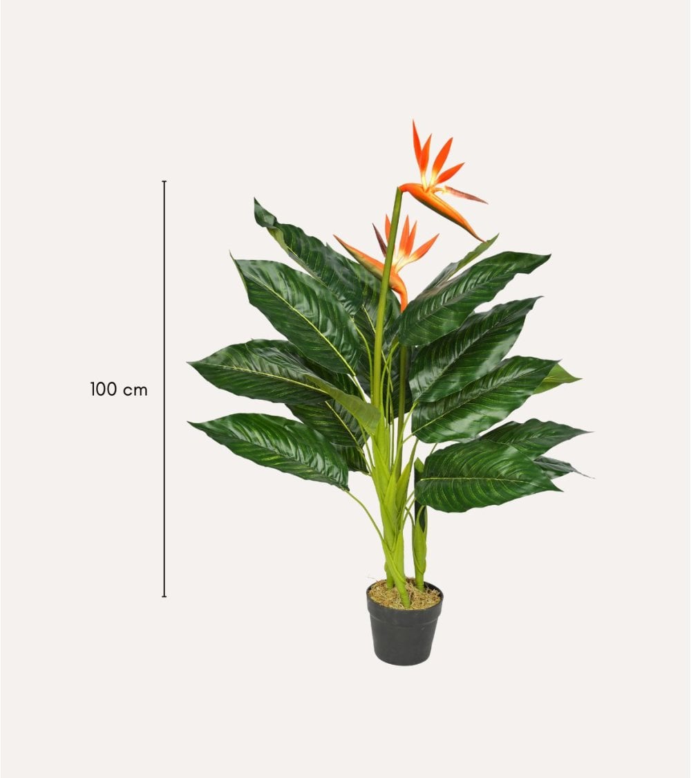 La Planta Decorativa Flor Esterlizia de Aspecto Realista, fabricada con materiales de alta calidad como plástico y poliéster, ofrece un aspecto realista y duradero. Sus hojas verdes brillantes y flores estilizadas mantienen su belleza todo el año, sin necesidad de riego, poda o luz natural directa. Ideal para espacios interiores con poca iluminación o lugares donde las plantas naturales no prosperan. Con un acabado minucioso, se convierte en un elemento clave para una decoración de hogar impactante. Perfecta para oficinas, negocios, recepciones o espacios comerciales que requieren una imagen cuidada y profesional. Mide 100 cm de alto y su diseño exótico tipo Strelitzia, con hojas grandes verdes y flores naranjas, es muy decorativo. No necesita mantenimiento y es versátil para hogar y oficina.