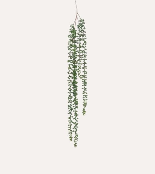 Fabricada en plástico y poliéster de alta calidad, esta planta decorativa es resistente, duradera y mantiene su color intacto con el paso del tiempo. Su follaje frondoso y sus tallos flexibles crean un efecto de caída muy realista, ideal para colgar en estanterías, repisas altas, muebles de salón, entradas, oficinas o zonas de paso donde se quiera añadir un toque de frescura sin preocuparse por riegos, luz o poda.