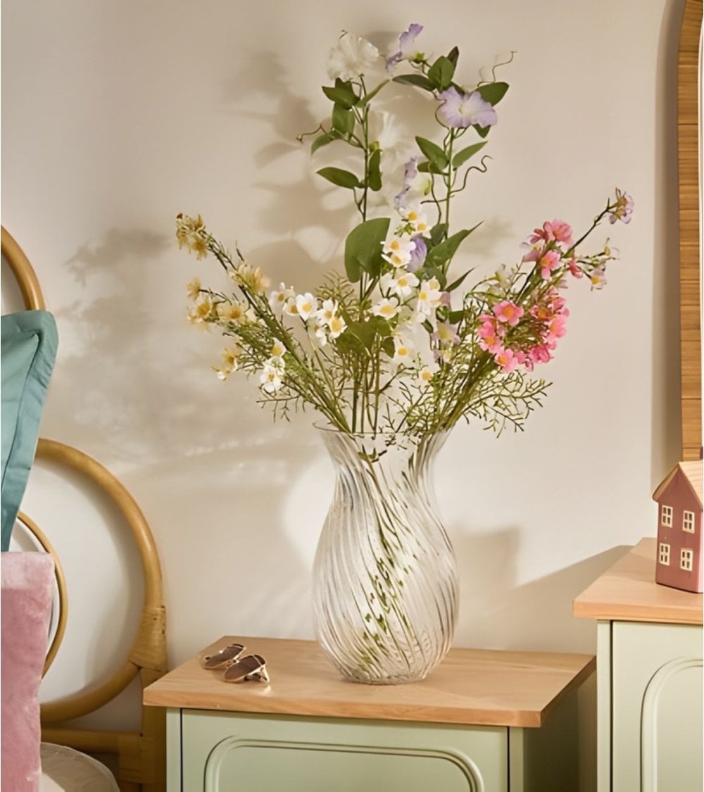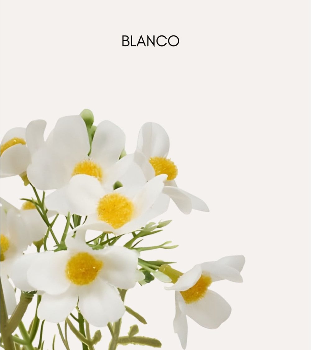 Cada rama está fabricada en plástico de alta calidad, con tallos finos y flexibles en tono verde natural y delicados racimos florales. Sus variaciones de color —amarillo, rosa, morado y blanco— te permiten crear composiciones personalizadas: desde ramos vibrantes combinando varios tonos, hasta arreglos suaves y elegantes con un solo color dominante.