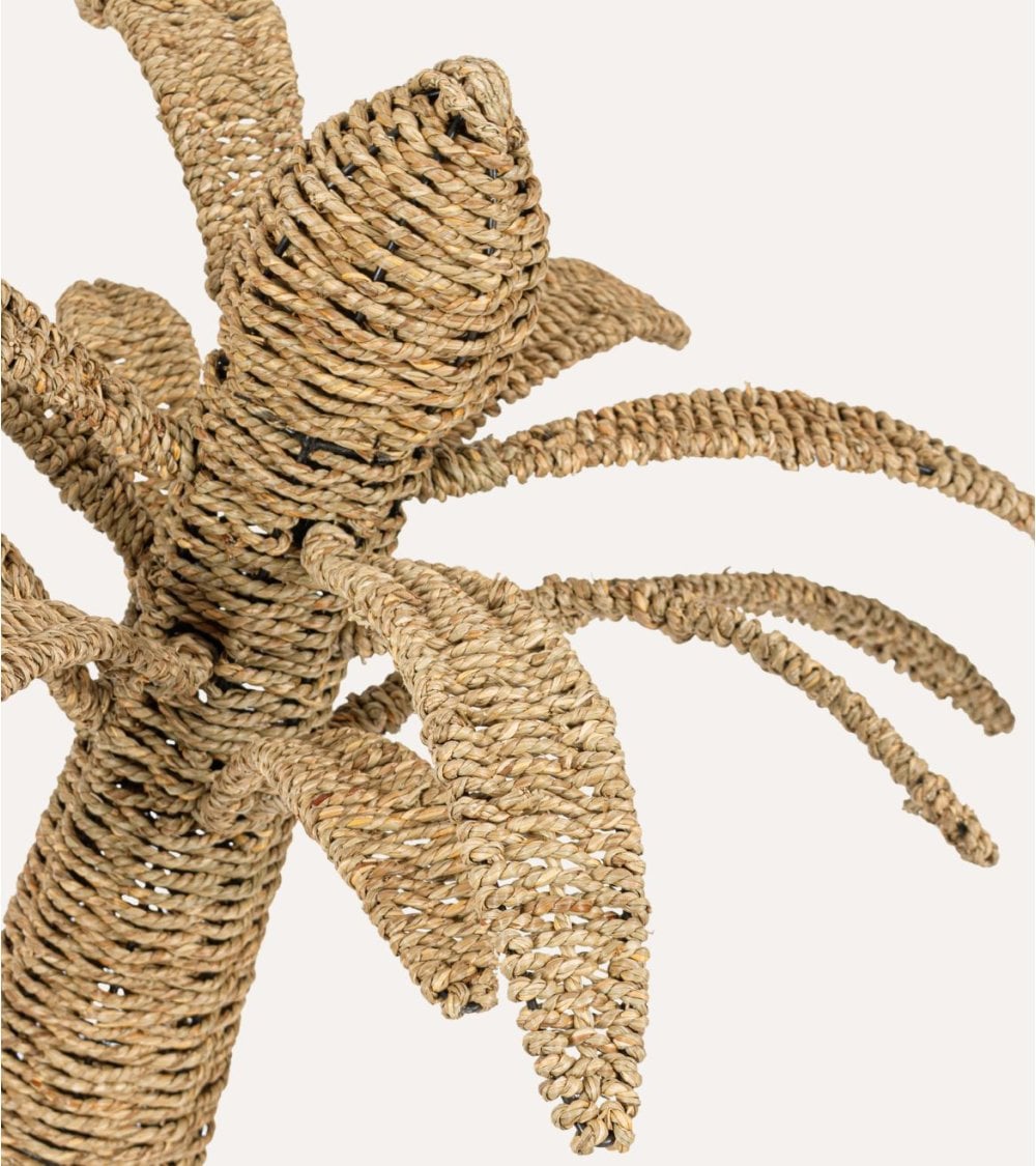 - Material principal: Estructura de metal resistente combinada con fibra vegetal trenzada de aspecto natural.