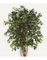 Con una altura de 150 cm, este ficus artificial se presenta como un elemento central en tu hogar u oficina. Su follaje denso y brillante imita la apariencia natural de las hojas de un ficus real, con tonos verdes variados que aportan profundidad y realismo. Las hojas ovaladas están dispuestas en un patrón orgánico, creando una sensación auténtica que encantará a tus visitantes.