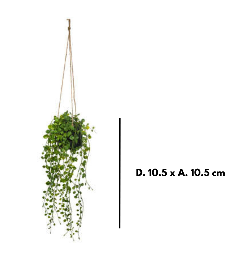 Con su tamaño compacto de 11 cm, esta planta colgante es un elemento esencial para cualquier hogar o espacio de trabajo que busque un toque de frescura y belleza natural. Esta planta artificial no solo es estéticamente agradable, sino que también es increíblemente realista, lo que la convierte en una excelente opción para aquellos que desean disfrutar de la belleza de la naturaleza sin el mantenimiento que requieren las plantas reales.