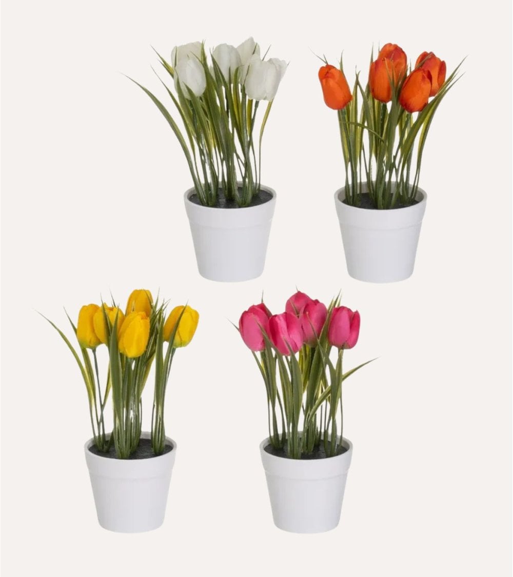Los Tulipanes Decorativos en Maceta son la adición perfecta para cualquier hogar o espacio de trabajo. Estos tulipanes artificiales son una excelente manera de agregar un toque de color y belleza a cualquier espacio sin la necesidad de mantenimiento. Disponible en blanco, naranja, amarillo y rosa, estos tulipanes son vibrantes y realistas, lo que los hace perfectos para cualquier decoración.