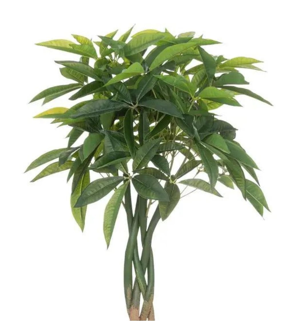 Bota de Pachira artificial de 110 cm de alto, con maceta de plástico incluida, ideal para cualquier estancia del interior de tu hogar.