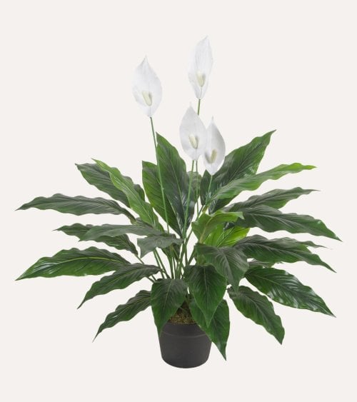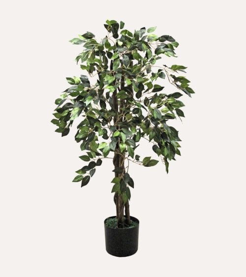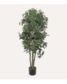 - Follaje: Denso y vibrante, con hojas verdes elaboradas en material sintético que simulan la apariencia real, creando un efecto natural.