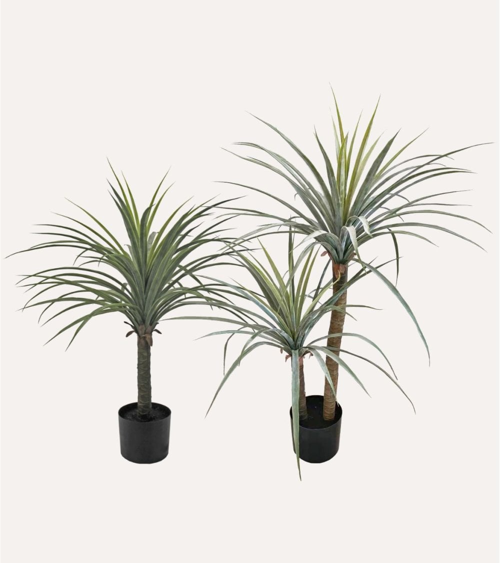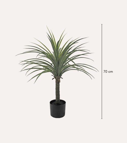 La planta Yuca Decorativa con Aspecto Realista es meticulosamente diseñada para imitar la apariencia auténtica de una yucca. Su tronco central con acabado marrón texturizado simula la corteza natural, y sus hojas largas y delgadas se extienden hacia afuera, aportando frescura y vitalidad. Disponible en dos tamaños, 70 cm y 110 cm, y presentada en macetas negras cilíndricas, esta planta aporta un toque elegante y minimalista a cualquier espacio. Fabricada en plástico de alta calidad, garantiza resistencia y longevidad.