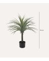 La estructura de esta planta está diseñada meticulosamente para imitar la apariencia auténtica de una yucca. Su tronco central presenta un acabado marrón texturizado que simula la corteza natural, mientras que las hojas largas y delgadas se extienden hacia afuera, creando una sensación de frescura y vitalidad.