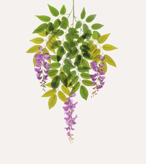 Dimensiones: Aunque no se especifican medidas exactas, la longitud total desde el mecanismo colgante hasta la punta del tallo más largo es considerable. Su tamaño de 50 cm, lo que permite adaptarla a diferentes espacios.