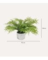 La Helecho Decorativa destaca por su diseño meticulosamente elaborado. Sus frondas largas y delgadas imitan a la perfección las características de un helecho real, presentando una variedad de tonos verdes que van desde los más claros hasta los más oscuros. Esta variación no solo aporta profundidad, sino que también resalta su aspecto naturalista.
