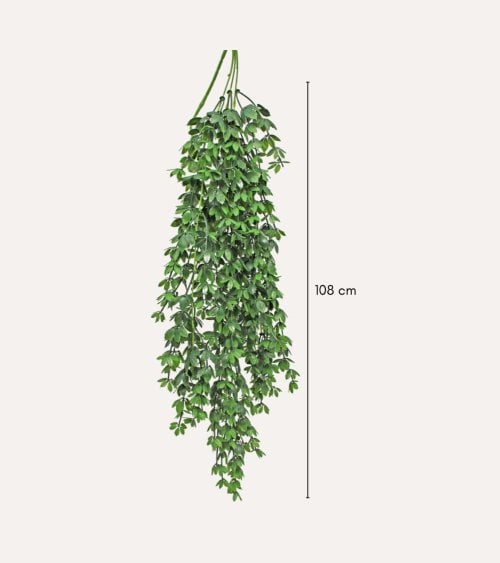 Con un diseño cascadante, este colgante presenta largas vides que se extienden hacia abajo, imitando la belleza natural de las plantas reales. Su apariencia realista se complementa con una variedad de tonos verdes, desde un vibrante verde lima hasta profundos verdes bosque, creando una sensación de profundidad y autenticidad.