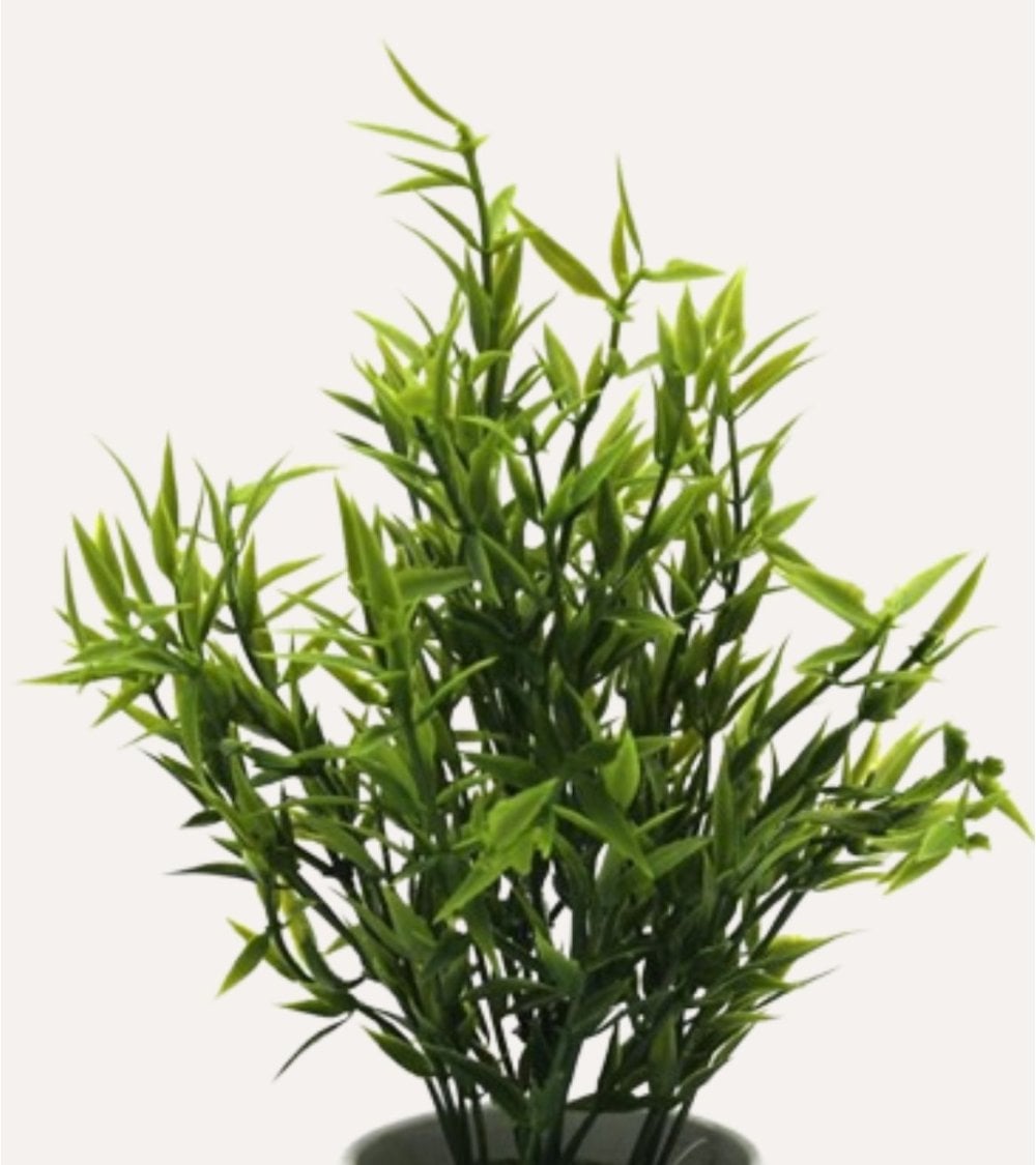 El planta de bambú presenta hojas alargadas y puntiagudas, que imitan a la perfección las características del bambú real. Su vibrante color verde aporta frescura y vitalidad a tu decoración. Las hojas cuentan con un acabado brillante que no solo resalta su aspecto natural, sino que también juega con la luz, creando una sensación de profundidad.