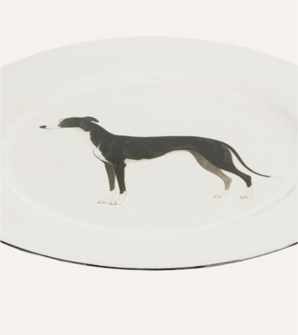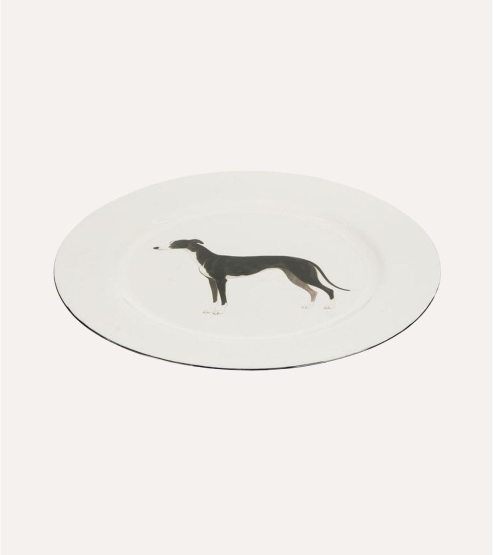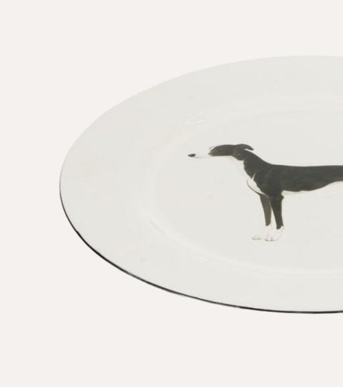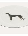 Su diseño presenta la elegante silueta de un perro galgo, un motivo muy apreciado por los amantes de los animales y de la decoración contemporánea. El acabado en tonos neutros sobre fondo claro hace que este bajo plato combine fácilmente con diferentes estilos de vajilla, desde la más minimalista hasta propuestas más coloridas. Además, su borde fino en contraste realza el dibujo central, aportando un aire sofisticado a cualquier mesa.
