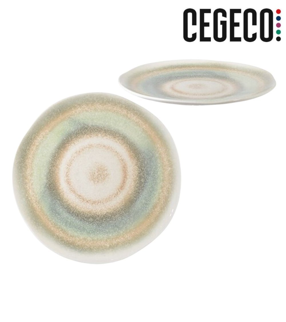 El Plato Llano Nare de Porcelana es una pieza de menaje única que combina funcionalidad y estética en un solo producto. Este plato, perteneciente a la colección Kayla Nare de porcelana, presenta círculos de pintura abstractos y colores suaves que parecen una galaxia, otorgándole una apariencia artística. Ideal para servir platos impresionantes, este plato de Cegeco, una marca de menaje pensado para hostelería y de la más alta calidad, es un elemento imprescindible en cualquier hogar o restaurante.