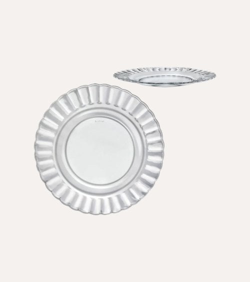 El diseño clásico del plato presenta un borde ondulado y acanalado que añade un toque sofisticado a tu mesa. Su superficie lisa y brillante refleja la luz, realzando la presentación de tus postres favoritos. Con un diámetro aproximado de 20.5 cm, este plato es perfecto para servir desde deliciosos pasteles hasta pequeños aperitivos.
