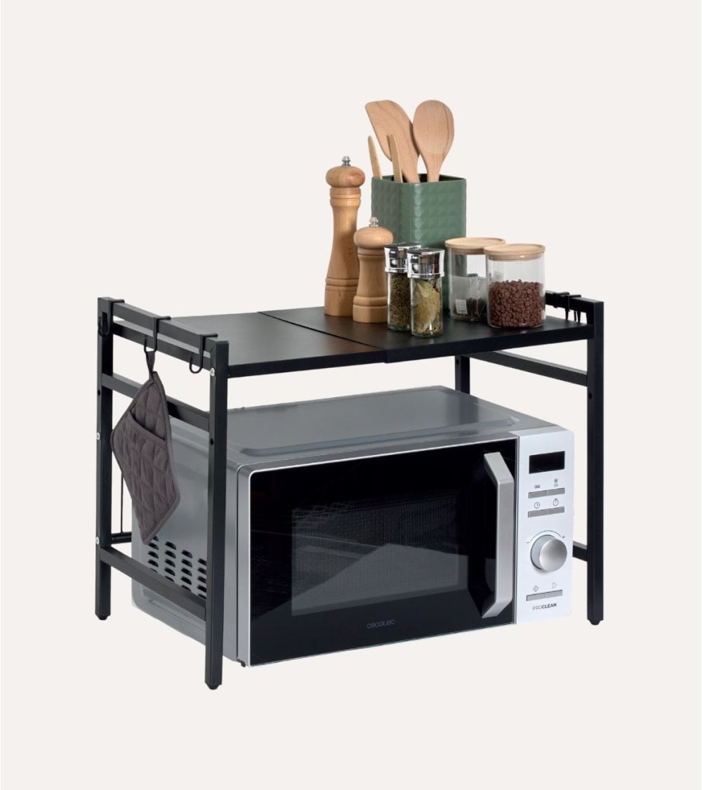 - Tamaño ajustable: Altura adaptable para acomodar diferentes tamaños de microondas o utensilios.