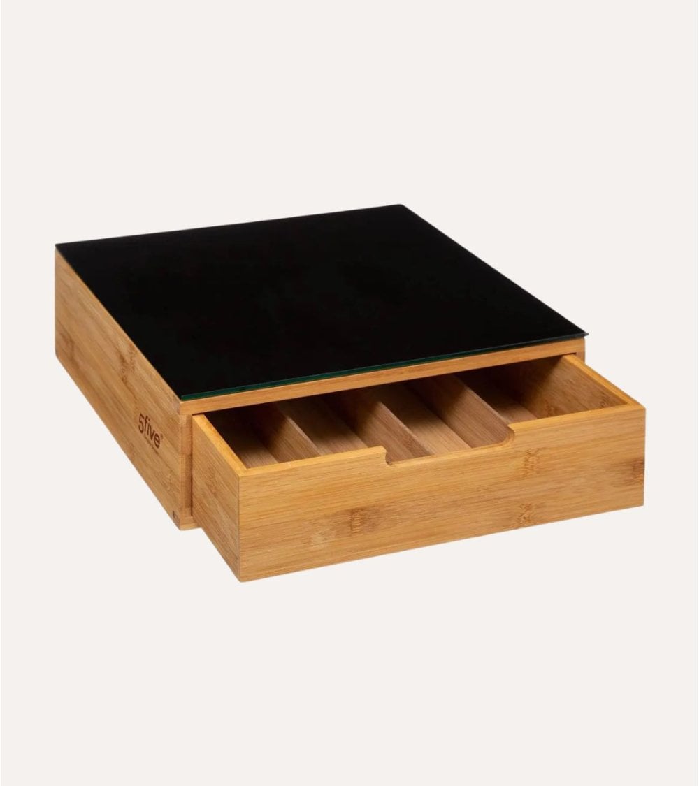 Portacápsulas con 4 Compartimientos de Bambú y Vidrio