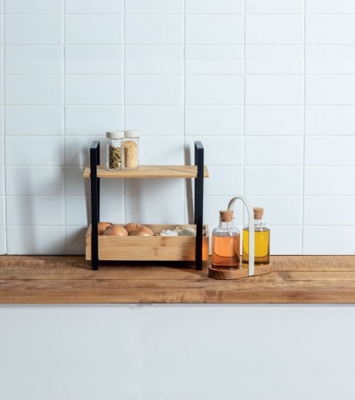 Transforma tu cocina con el Estante Organizador de 2 Alturas para Cocina, una solución elegante y funcional que combina estilo y practicidad. Este organizador es perfecto para mantener tus utensilios, especias y pequeños electrodomésticos en orden, todo mientras añade un toque moderno a tu espacio.