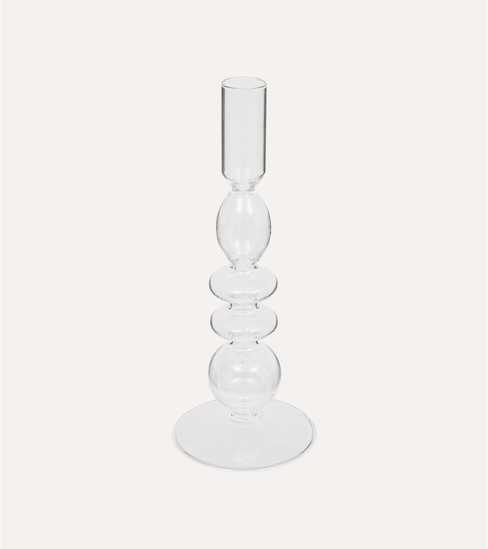 Descubre el Candelabro con Burbujas de Cristal, una pieza única que combina elegancia y modernidad en tu hogar. Este hermoso portavelas, fabricado en vidrio transparente, no solo es funcional, sino que también actúa como un atractivo elemento decorativo. Su diseño distintivo presenta una serie de formas burbujeantes que añaden un toque lúdico a cualquier ambiente.