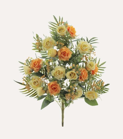 - MATERIAL DE ALTA CALIDAD: Combinación de poliéster para las flores y plástico para tallos, garantizando durabilidad.