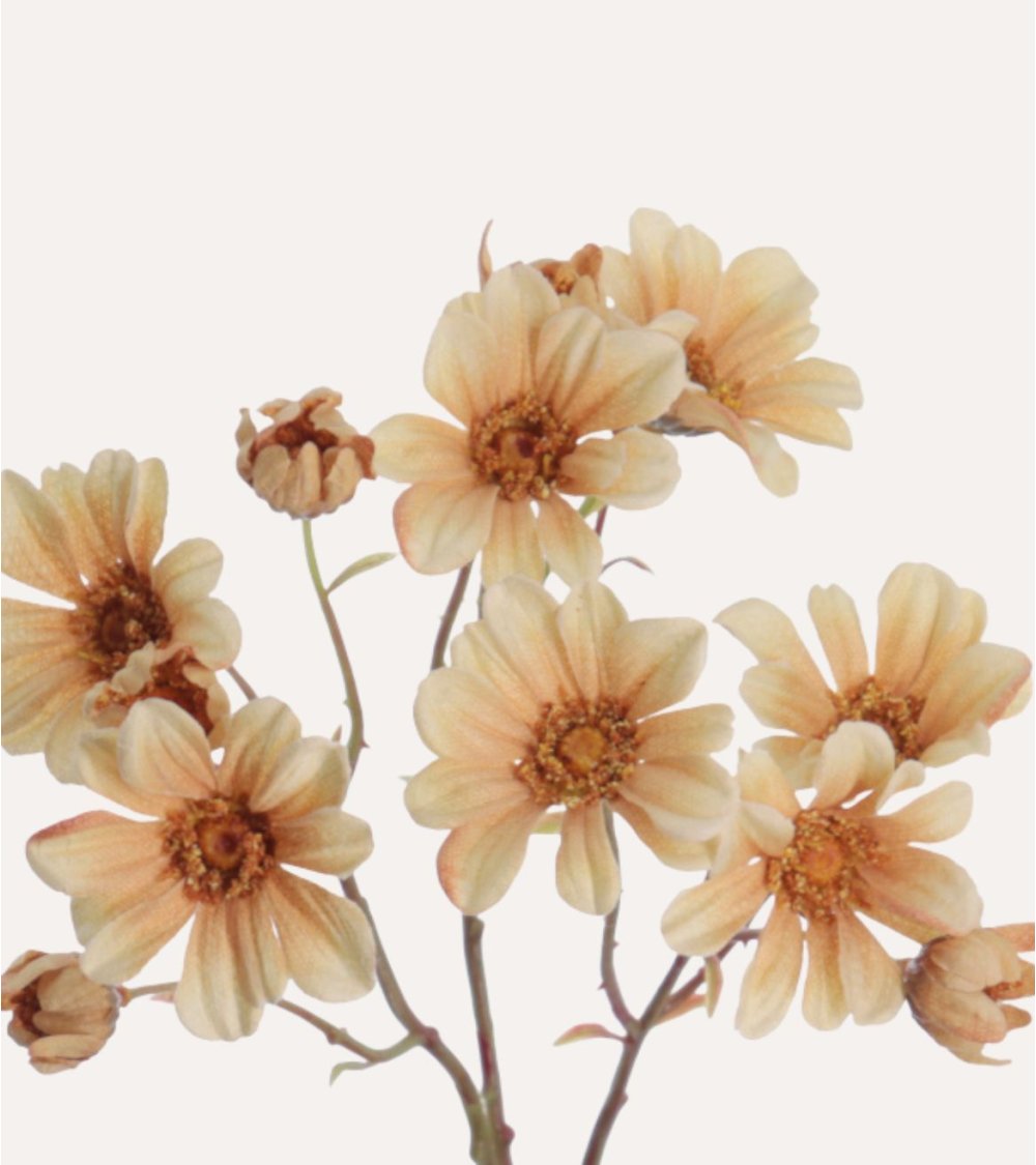 La Rama Decorativa Flores de Margaritas de Plástico, fabricada por Zaraplant, es un elemento decorativo de alta calidad y diseño realista. Sus flores de plástico y poliéster presentan una textura suave y translúcida que imita a la perfección los pétalos naturales. Su color beige claro con matices crema aporta calidez y versatilidad, adaptándose a cualquier estilo decorativo. El tallo delgado y resistente permite moldearlo fácilmente para crear composiciones personalizadas. Su tamaño es de 50 cm de alto, con pétalos ligeramente translúcidos y bordes rizados que aportan realismo. Los centros florales son texturizados en tonos más oscuros para un contraste natural. Ideal para realzar cualquier rincón del hogar u oficina.