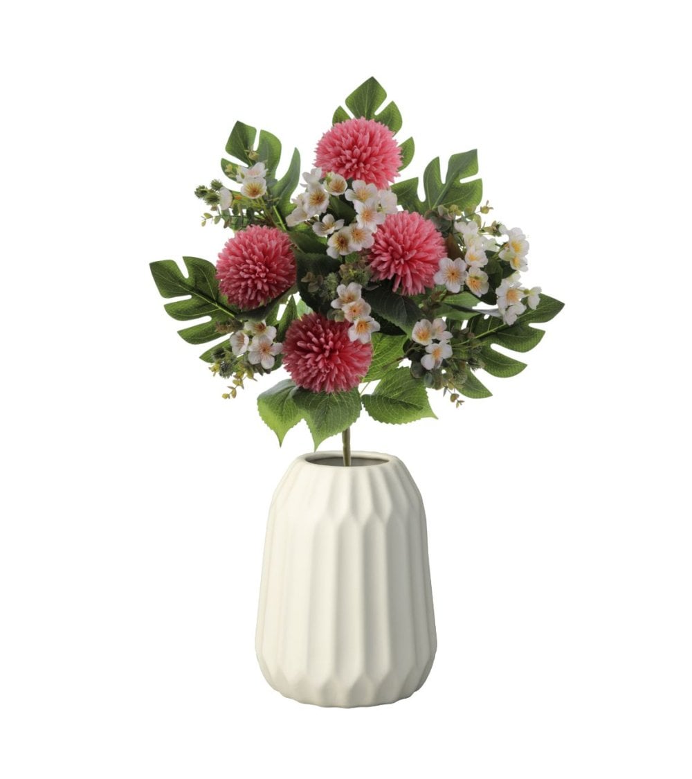 El Ramo Artificial de Crisantemo Pom Pom con Palma es una elección perfecta para aquellos que buscan añadir un toque de elegancia y sofisticación a su hogar. Este ramo artificial no sólo es hermoso, sino también increíblemente realista. Con su apariencia auténtica, es difícil distinguirlo de un ramo real. Disponible en los colores rojo, coral, marfil o malva, este ramo artificial es perfecto para cualquier ocasión o decoración.