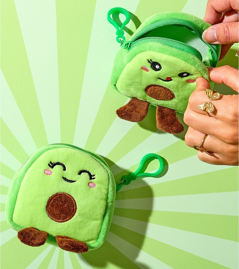 Fabricado con terciopelo suave, este monedero ofrece una textura agradable al tacto que invita a usarlo constantemente. Su diseño en forma de aguacate, con colores vibrantes y detalles kawaii, lo convierte en un artículo irresistible tanto para niños como para adultos amantes de los objetos originales y llenos de personalidad.