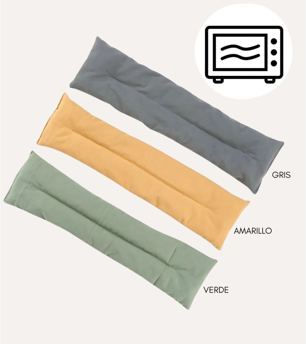 Descubre el Cojín de Semillas para Microondas, disponible en dos modelos. El Modelo 1, una bolsa de 16 x 2 x 26 cm, perfecta para aliviar dolores musculares. El Modelo 2, ideal para la zona cervical, con medidas de 45 x 2 x 12 cm. Ambos modelos están disponibles en tres colores atractivos.