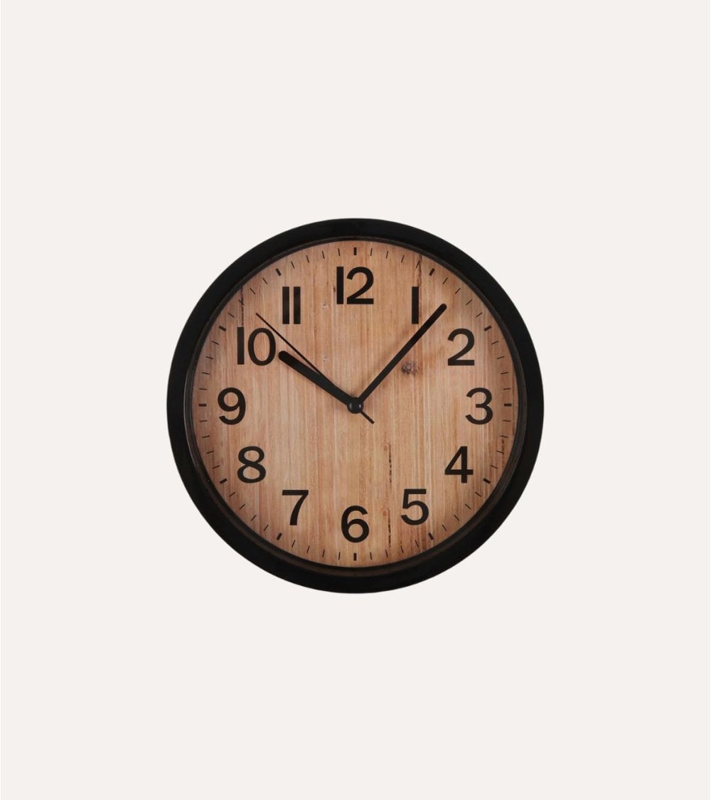 Este reloj de pared con efecto madera está fabricado con plástico de alta calidad, ofreciendo una apariencia elegante y sofisticada. Imita la textura natural de la madera, aportando calidez y durabilidad. Su estructura ligera facilita la instalación en cualquier pared y su tamaño estándar permite una lectura clara del tiempo. Disponible en negro y blanco, se adapta a tus preferencias decorativas. Tamaño: 22 cm de diámetro. Cara del reloj: Blanca con números arábigos grandes en negro.