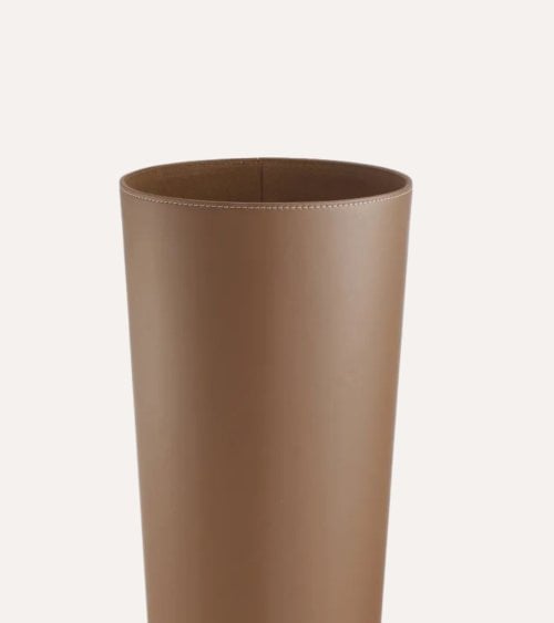 Este paragüero destaca por su acabado en efecto cuero, que aporta una textura cálida y atractiva, disponible en dos colores versátiles: Gris y Marrón. Su diseño redondo y estilizado se adapta perfectamente a diferentes ambientes, desde recibidores hasta salas de estar o despachos.