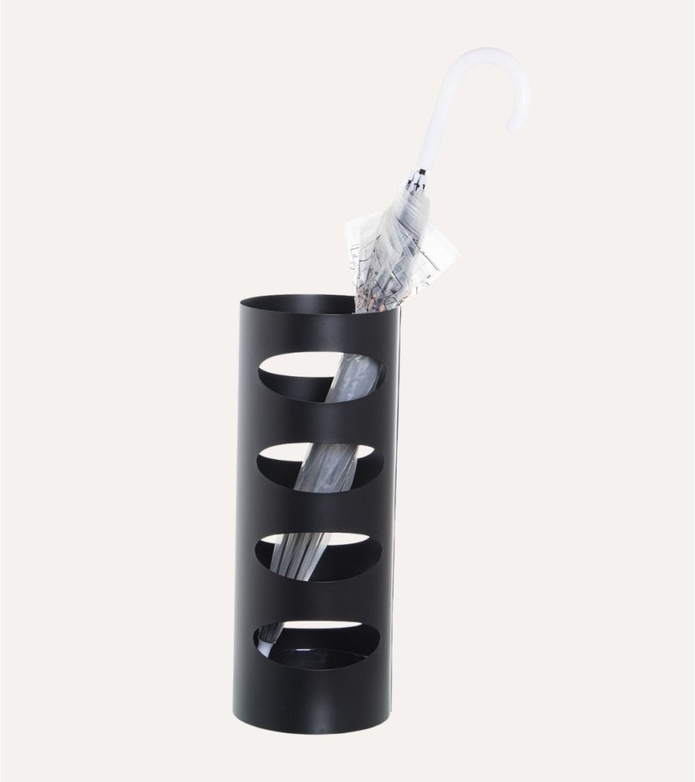 Este paragüero redondo de metal, con medidas de 19 x 19 x 49 cm, es un accesorio esencial para tu hogar. Su diseño único con círculos huecos ovalados a los lados no solo añade un toque de estilo, sino que también permite ver hacia el interior y asegura una mejor aireación para tus paraguas.