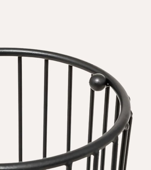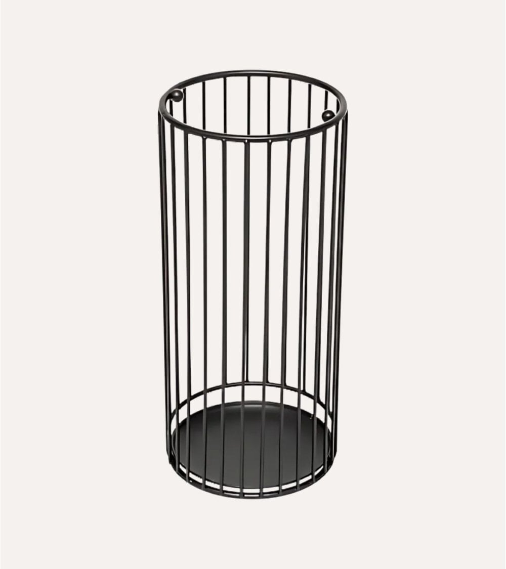 La forma cilíndrica del Paragüero Metty de Metal cuenta con barras verticales que crean una estructura abierta, permitiéndole exhibir sus paraguas mientras asegura que estén sujetos de manera segura. El acabado negro mate no solo realza su aspecto contemporáneo, sino que también facilita su integración en varios estilos de decoración interior, desde minimalista hasta industrial.