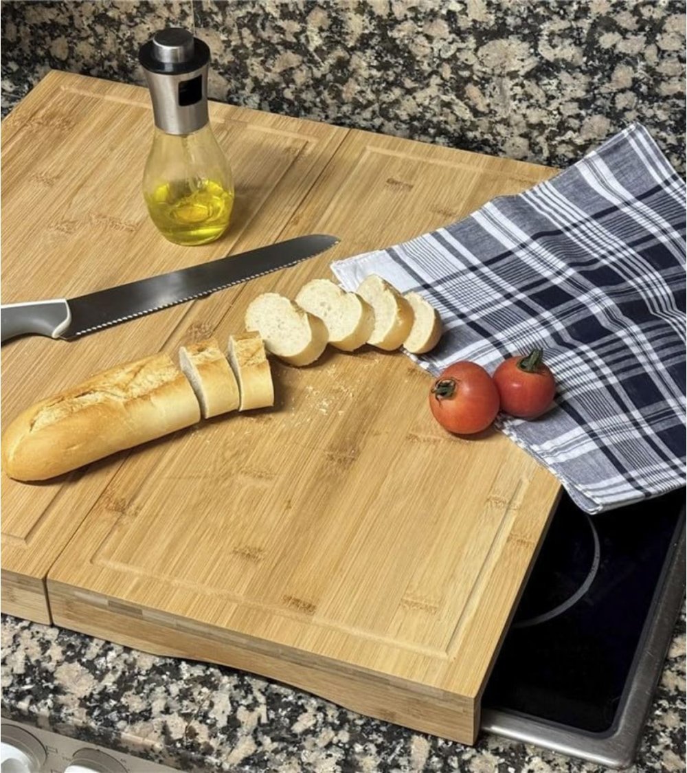 Esta tabla no solo es perfecta para cortar verduras, carnes o panes con total comodidad, sino que también funciona como un práctico cubre vitrocerámica que protege tu cocina del calor residual o posibles golpes. Su diseño versátil permite usarla como salvamanteles o incluso como bandeja para presentar quesos y embutidos en reuniones familiares o eventos especiales.