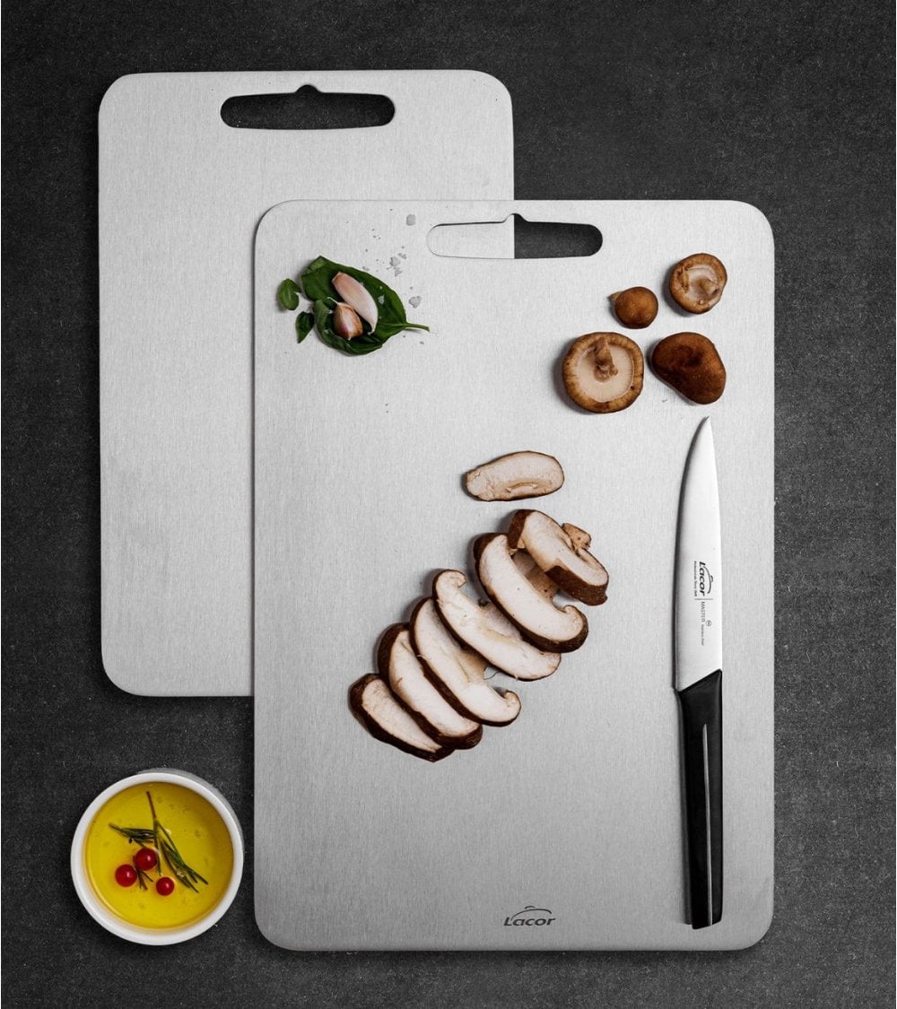 Descubre en ALI Hogar la exclusiva Tabla de Corte Titanium de Titanio Puro, un accesorio de cocina de alto rendimiento dentro de la categoría Salvamanteles y Tablas de Corte. Fabricada por Lacor, esta tabla ofrece una superficie de trabajo ultra resistente y altamente higiénica, perfecta para cocinas domésticas exigentes y para uso profesional.